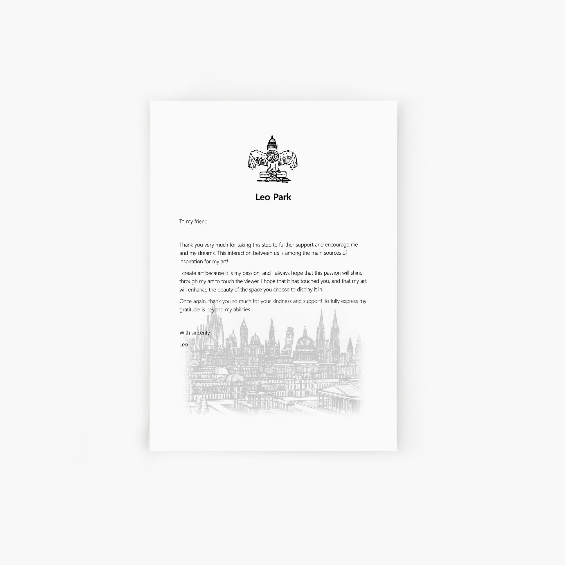- Presented on acid-free, archival textured cotton German Etching Giclée paper, from Hahnemühle